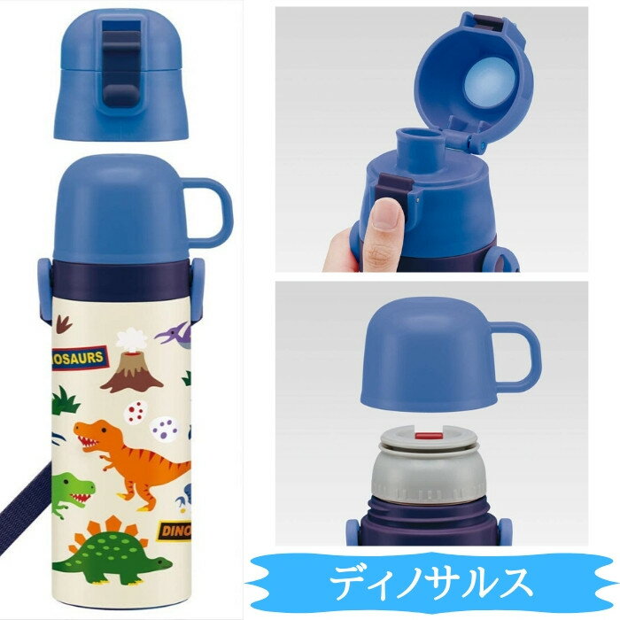 【あす楽 エントリーでさらに5倍】水筒 キッズ 2way ステンレス 直飲み コップ付 子供 肩掛け 保温 保冷 超軽量 ボトル 470ml SKDC4 恐竜柄 ディノサルス スケーター 483905